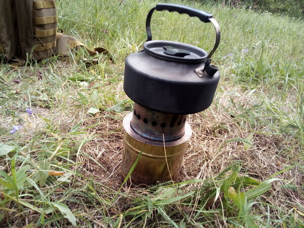 Мы добрались до места уже ближе к полудню. Решили для начала немного подкрепиться и выпить чаю. Я снова взял с собой свою верную щепочницу Pirostove, на этот раз с небольшим новым приспособлением для печки (о нём я расскажу как-нибудь отдельно). Забросив в топку то, что валялось под ногами, буквально за несколько минут мы вскипятили чайник, угостили всех желающих, перекусили и отправились осматривать территорию бывшего скита.