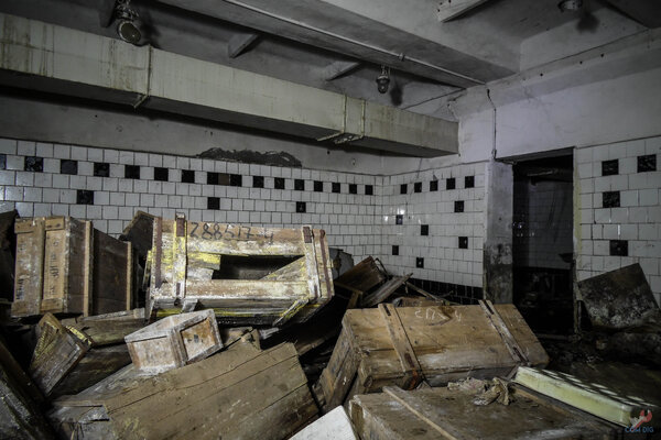 И, конечно, в каждом таком сооружении должен быть склад гражданской обороны. От него остались лишь груды сгнивших ящиков.