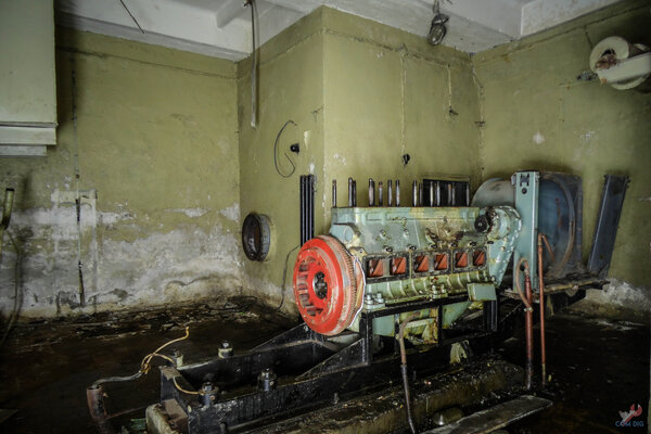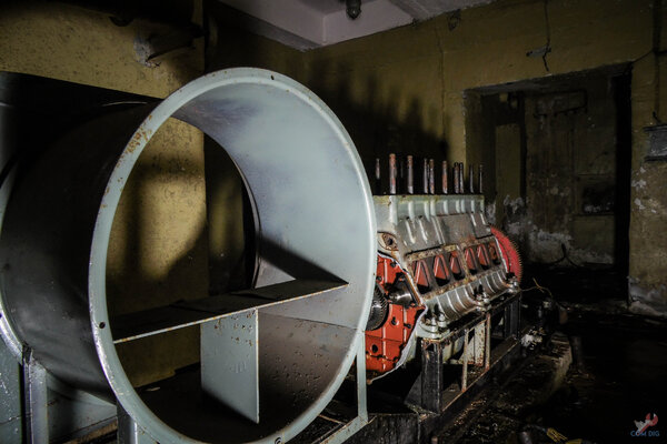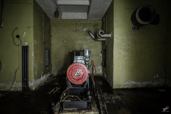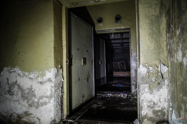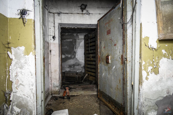 Герметичная дверь, ведущая в помещение, где когда-то стояла дизельная электростанция.
