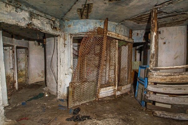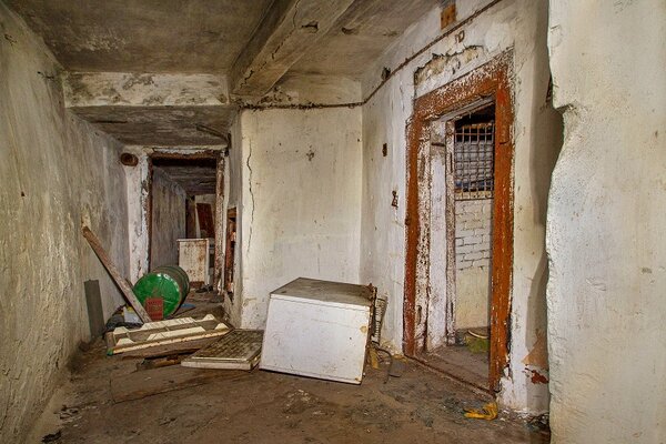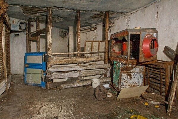 Главный зал, где работала оперативная группа. В него выходят окна из кабинета начальника ГО. Изначально в убежище также были пункт связи и фильтро-вентиляционная установка, но от них, к сожалению, ничего не осталось.