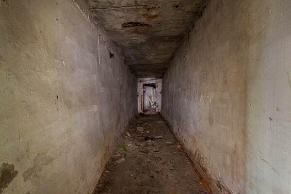 У входа в само сооружение потерны сходятся в общем тамбур-шлюзе. Справа виден проём, где раньше была гермодверь, ведущая внутрь, а слева — расширительная камера с проёмом для гермоставня, который вёл в гравийный фильтр.
