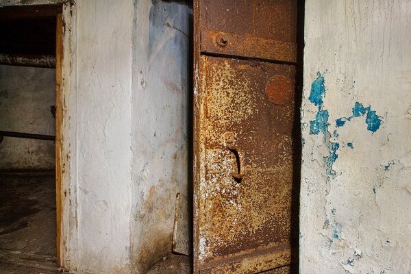 Здесь, к счастью, одна из гермодверей сохранилась на своём месте.