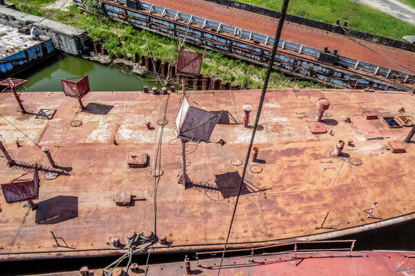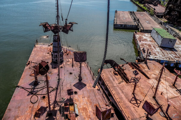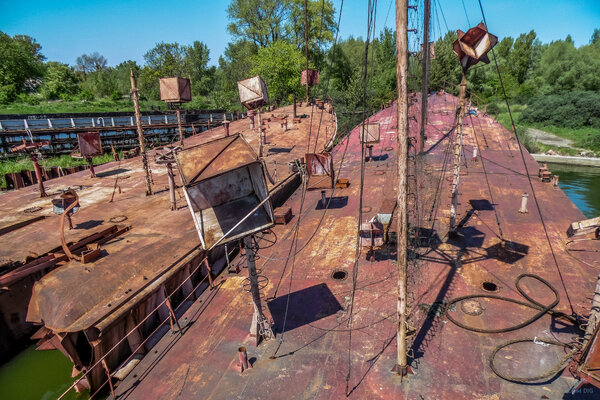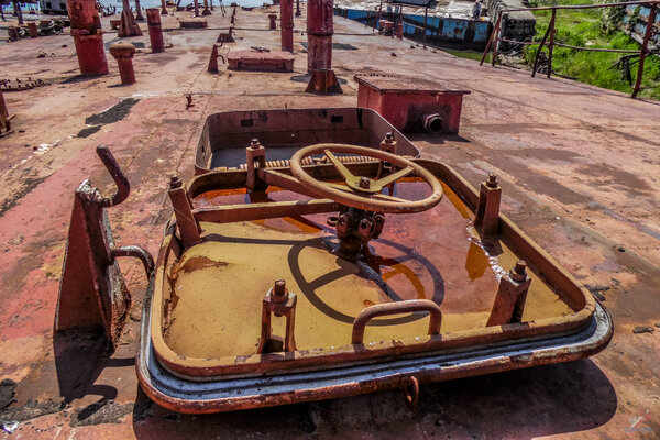 Здесь стояли два корабля, очень похожих друг на друга. Оба имели лёгкий крен и были наполовину затоплены. Но, что удивительно, металлические конструкции сохранились довольно хорошо: герметичные люки со штурвалами, целые мачты, на которые при желании можно было бы забраться. Время начинать нашу фотопрогулку!