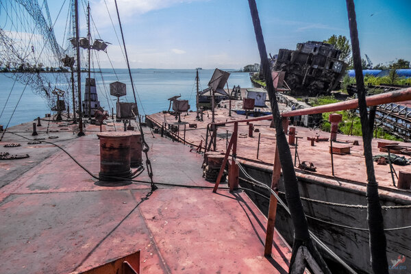 В Балтийске, что в Калининградской области, сосредоточено множество индустриальных памятников. Тут тебе и заброшенные форты, и немецкие бункеры с протяжёнными подземными ходами, и десятки ДОТов. Но после многих километров, пройденных по подобным «бетонным» и довольно однообразным местам, душа просит чего-то иного — более спокойного и нестандартного. По совету местного знатока мы отправились на небольшое корабельное кладбище. На берегу залива, обдуваемом свежим ветром, на вечном приколе доживают свой век суда, давно отслужившие свой срок. Ещё на подходе, сквозь густую зелень, виднелись их высокие мачты.