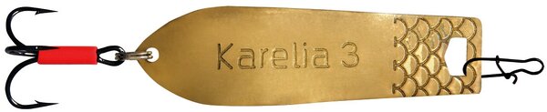 Однако бывают блесны, которые сложно однозначно отнести к одному из этих типов. Например, знаменитая троллинговая блесна «Karelia». По форме тела ее можно было бы считать C-образной, но прямоугольное крепежное отверстие, расположенное поперек ширины, полностью меняет игру — она становится характерной для S-образных моделей.