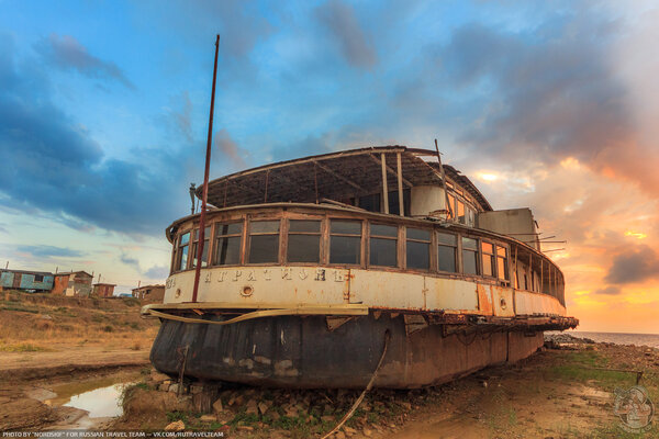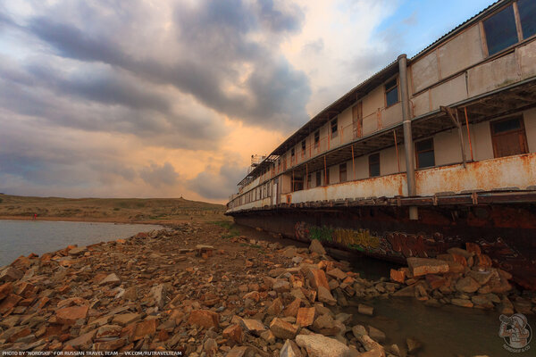 Но всё это в прошлом. Сегодня судно, изначально не предназначенное для морской воды, стоит на отмели, и процессы коррозии неумолимо делают своё дело.