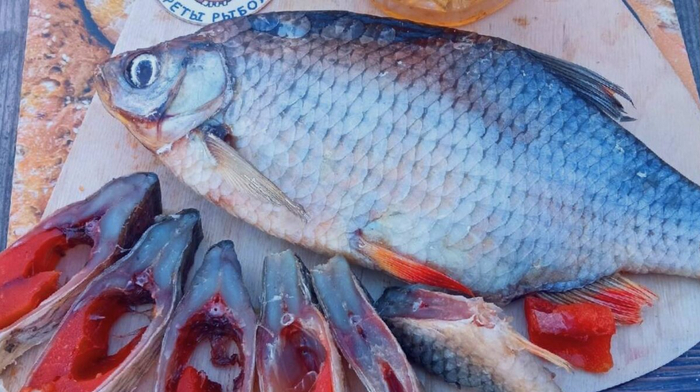 Рыбу не потрошим. Да, именно так. Плотву или леща нужно оставить целиком, с головой и внутренностями. Это, сохраняет вкус и даёт нужную плотность мяса. Потрошить можно 2-3 кг рыбины.