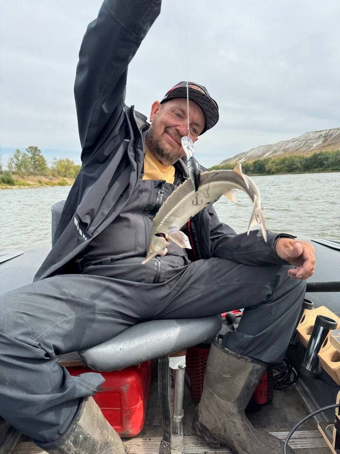 После долгого пути и обустройства на базе мы сразу же решили испытать удачу в троллинге. Спустили лодку на воду, и понеслась! Волнение перед первой рыбалкой всегда особенное. И не зря — хищник нас порадовал! Попадались щуки и судаки. А какой сюрприз нас ждал — пара небольших стерлядок! Конечно же, отпустили их обратно в родную стихию.