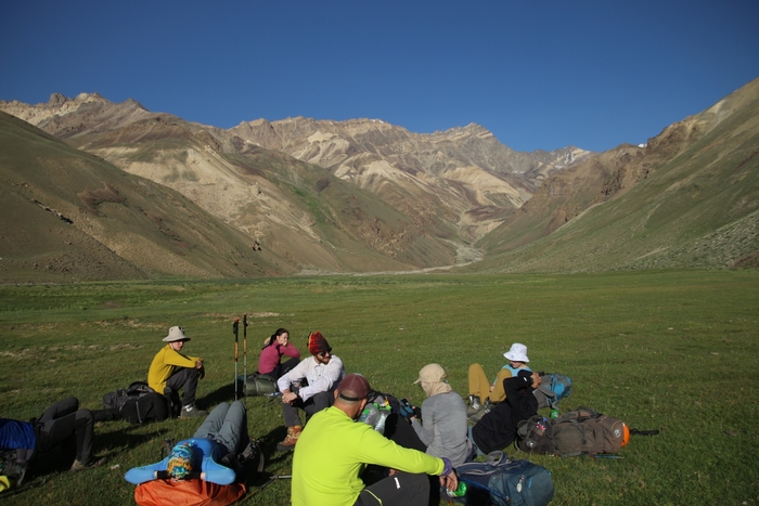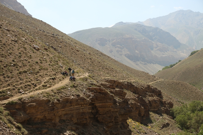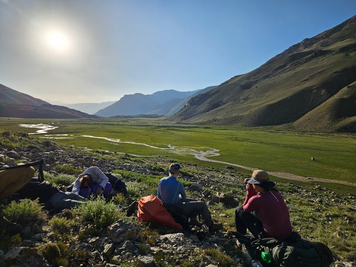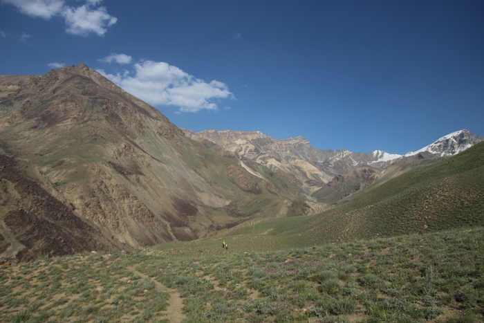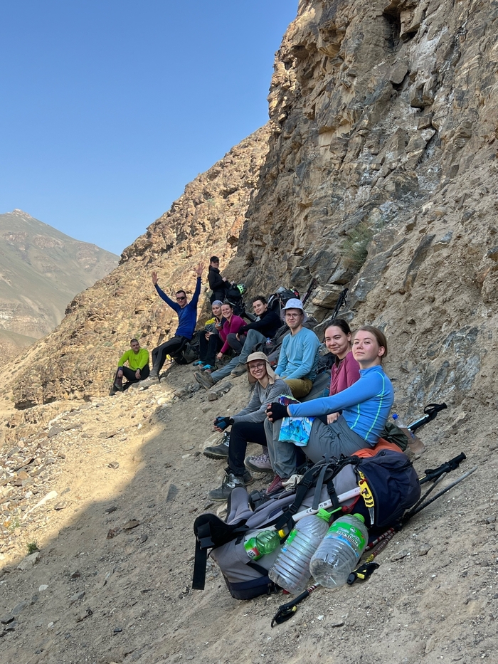 Концепция наших ходок несколько изменилась - помимо того, что мы растягивались и Катя Б. попросила отсекать по 15 минут хода лидера (в тот день я лидировал достаточно долго), так еще и в яркую солнечную погоду предполагалась сиеста на обеде, когда под тентом группа пережидала наиболее “палящий” отрезок времени. Впоследствии выяснится, что солнце на юго-западном Памире отнюдь не само собой разумеющееся явление, а такое же спорадическое, как и дождь со снежной крупой.