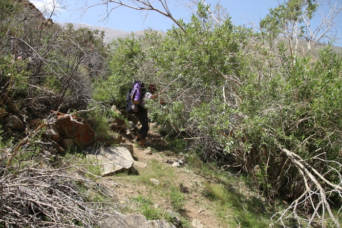 Поскольку шатер сворачивать не приходилось (спали под тентом), то собрались достаточно оперативно - на полчаса раньше, чем во все последующие дни. Однако даже в начале седьмого утра солнце уже давало о себе знать - поэтому я старался делать привалы там, где еще сохранялись остатки тени.