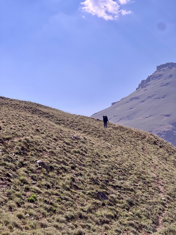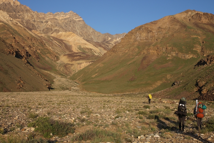Так получалось первые несколько ходок. СЗ-ЮВ экспозиция долины, по которой мы заносили заброску, в половину девятого поставила крест на затее отдыхать в тени. Мы шли прямо на светило.