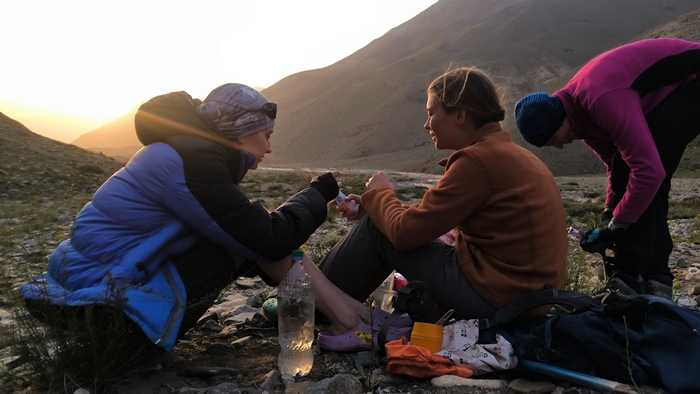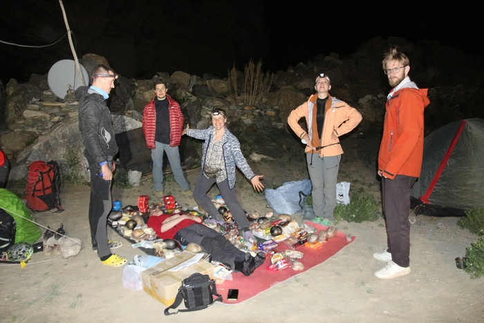 Пока трио искало осликов, мы ставили шатер прямо во дворе этого фермера, в пыли и камнях. Стас и Ваня, будучи завхозом и снаряженцем соответственно, в темноте маялись с распределением еды и снаряги на самое длинное 10-дневное первое кольцо маршрута.