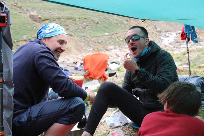 Сегодня недомогание напало на Катю З., и помимо помощи медика (Тани) нужна была помощь квалифицированного врача в виде самой Кати Б. Себя же я чувствовал хорошо, казалось, будто акклиматизация успешно пройдена. Да и 8-й день на маршруте, пора бы уже и привыкнуть к разряженному воздуху…