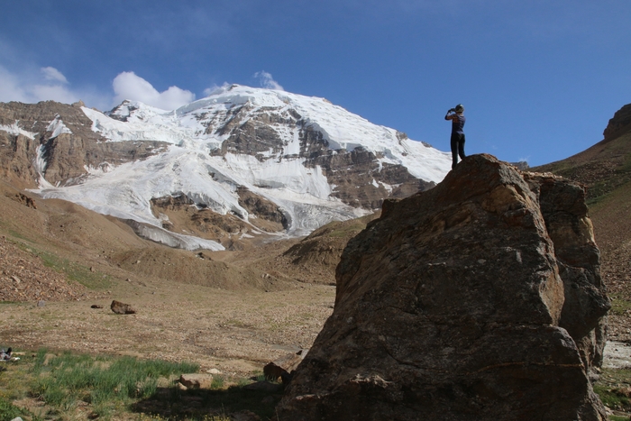 Катя фоткает Джентив (5875 м) - местную доминанту.