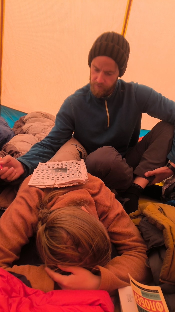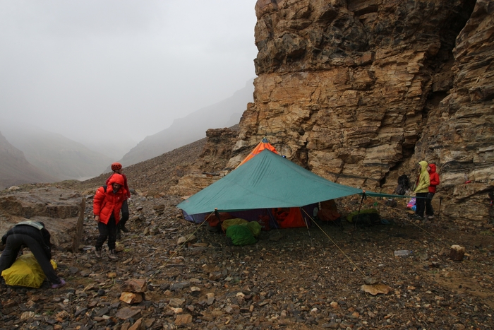 Вопреки опасениям, что со скал что-то может отвалиться в сторону шатра, никаких эксцессов за две ночи и отсидку не случилось.