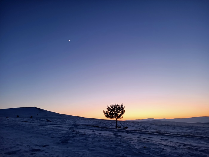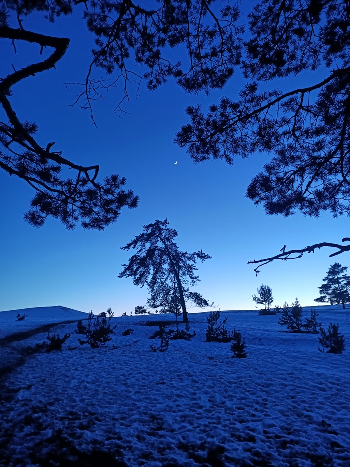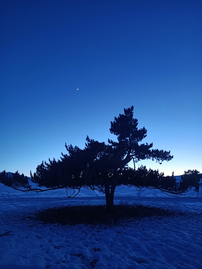 В конце, когда появились звёзды, я почувствовал как бьётся мое сердце, настолько это было красиво и атмосферно. Попытаюсь переедать через фотографии этот закат. Я концентрировал внимание на дереве, на месяце над ней, над звёздами, а с боку подсвечивались горы, это было восхитительно. И далее, среди деревьев в лесу, ловил месяц и звёзды, ох, как жаль что фотографии не способны передать то ощущение, тот восторг( день удался, я счастлив.