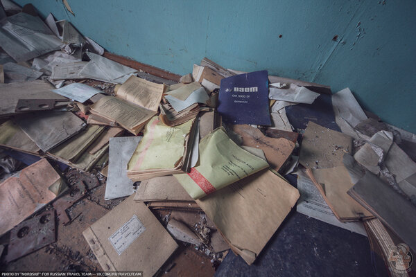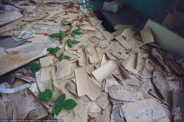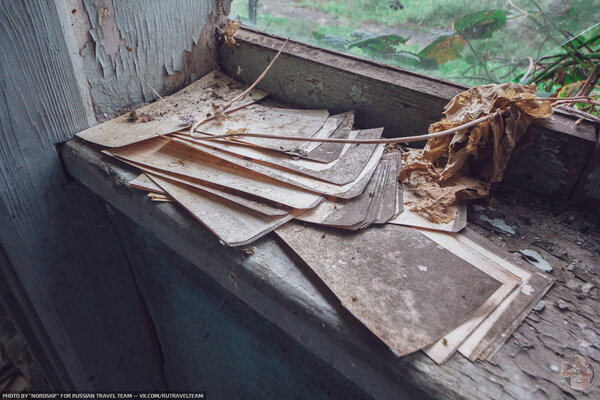 Крыша пока держится, окна в большинстве целы, поэтому бумага сохранилась довольно хорошо.