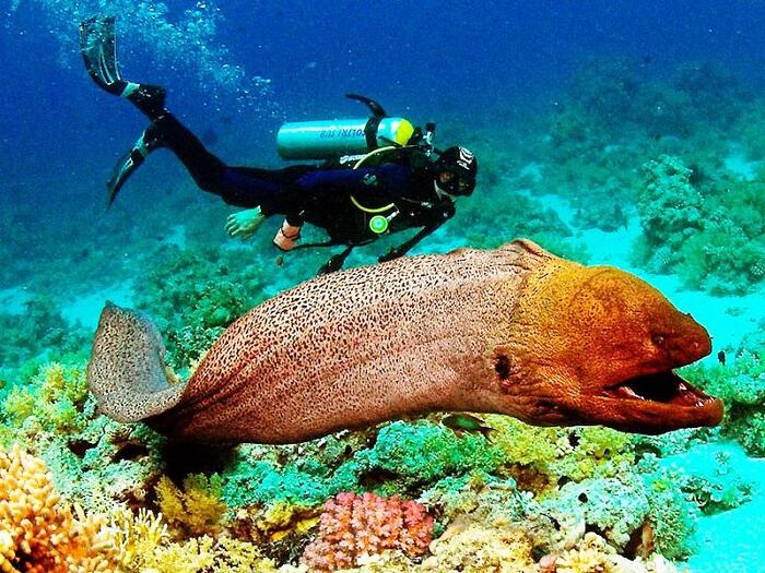 Всего в водном пространстве насчитывают около 100 видов этих рыб, размером от 10 сантиметров до 4 метров и весом до 45 килограммов. Местом своего обитания мурены выбирают глубину около 40 метров, но иногда их можно встретить и на 150-метровом дне. Как правило, эти хищники прячутся в расщелинах скал и кораллах, выжидая свою жертву. Мурену легко узнать по змеевидной голове и голому без чешуи телу. Угрожающе открытый рот ее не представляет угрозы, так она получает кислород.
