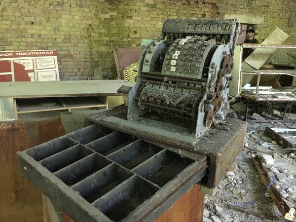 Касса в одном из заброшенных магазинов Припяти