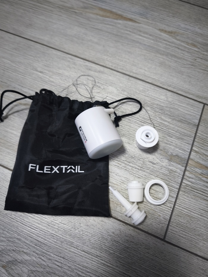 Надувал и сдувал на одной зарядке 24 коврика и при этом 3 ночи использовал как фонарик. Можно зарядить от пауэрбанка.