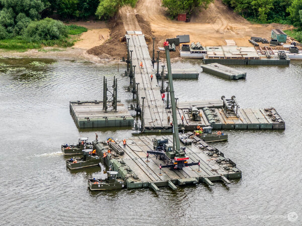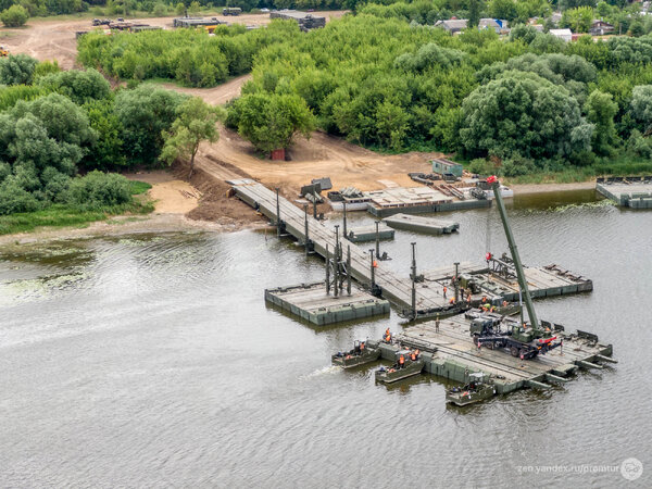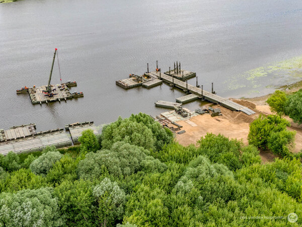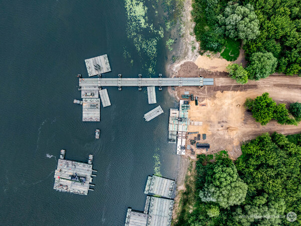Хочу поделиться своими наблюдениями за тем, как военные строители возводят понтонную переправу через реку неподалёку от моей дачи. Заметил эту активность сравнительно недавно, к сожалению, бываю там нечасто.