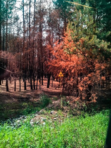 Но, как ни парадоксально, именно так — выжженным и мёртвым — Рыжий лес выглядел в первые месяцы после аварии. Эвакуированные жители Припяти вспоминали, что это было сюрреалистическое зрелище: будто осень наступила посреди весны.