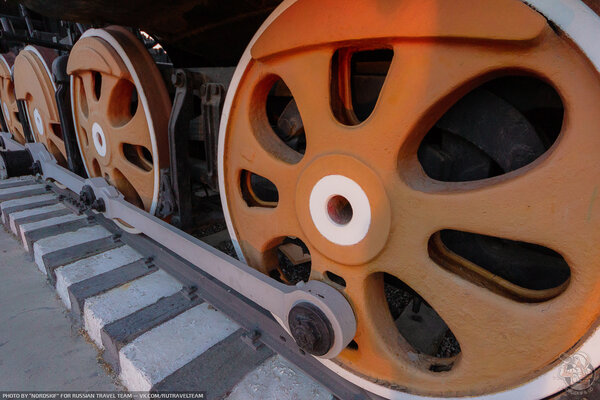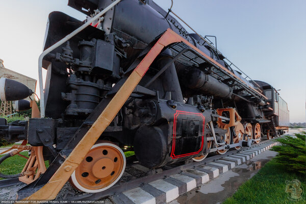 Первое, что бросается в глаза — это его удивительная доступность. Паровоз установили прямо на рельсы, лишь чуть приподняв над землей. Здесь нет высоких постаментов, из-за которых приходится задирать голову, чтобы рассмотреть детали. К технике можно подойти вплотную, почувствовать ее масштаб и мощь.