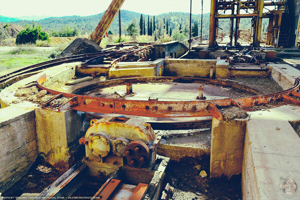 Вот, например, разворотный круг для вагонеток — некогда ключевой элемент логистики, а ныне печально стоящий, частично разобранный на металл.