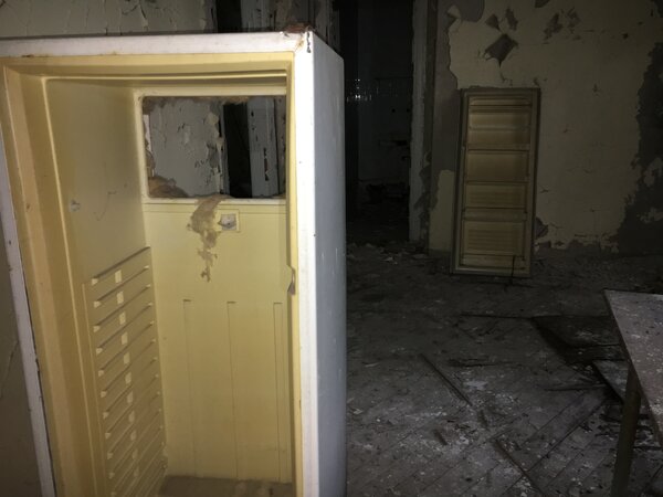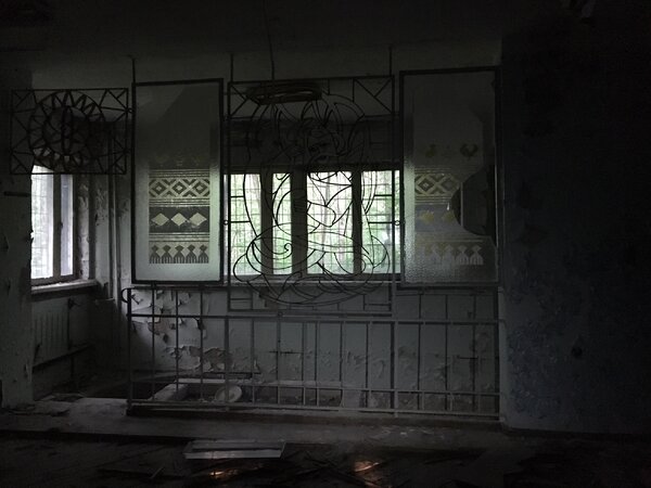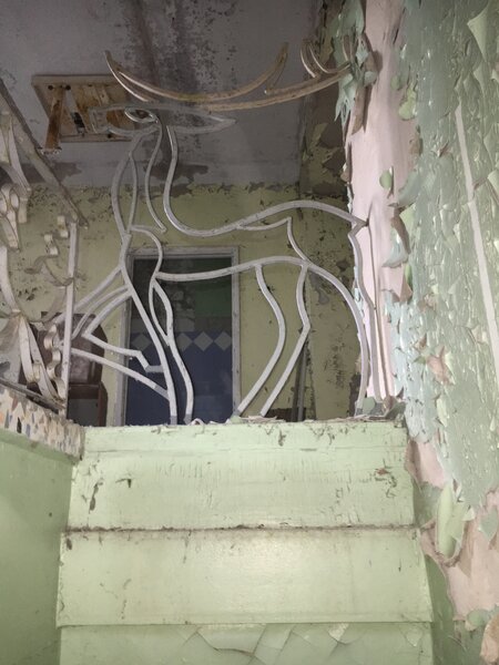 Самое удивительное, что мы обнаружили внутри, — это сохранившиеся металлические декоративные элементы. В отличие от большинства зданий в Чернобыльской зоне, которые давно разграблены и опустошены мародёрами, здесь ещё можно увидеть следы былого, пусть и скромного, шика советской эпохи.
