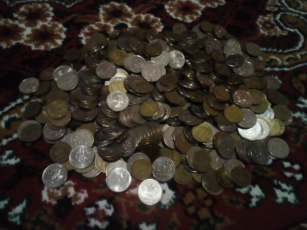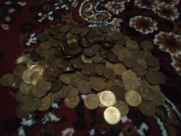 Высыпаем все на ковер — получилась внушительная горка. Настоящий клад, не иначе! Возможно, когда-нибудь я закопаю подобный «сокровищ» для потомков. Думаю, будет интересно через лет тридцать откопать такие монеты. Что к тому времени будет валютой — остается только гадать.