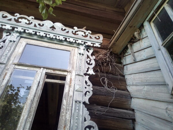 Жизнь в доме всё же теплится. Подходя к крыльцу, я заметил в углу наличника маленькое птичье гнездо. Люди ушли отсюда навсегда, но птицы не покинули это место — они продолжают поддерживать здесь крупицу жизни.