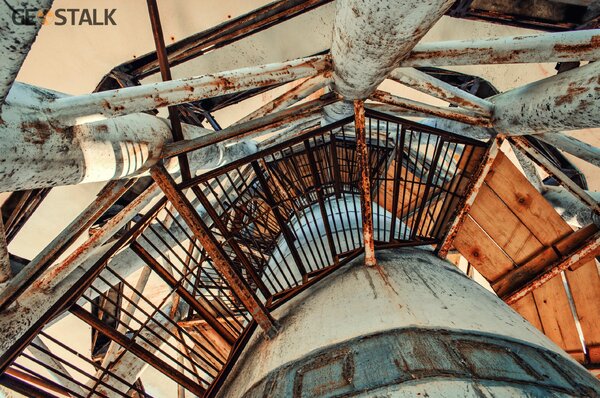 При большом желании можно попробовать забраться на самый верх. Нижний пролёт лестницы демонтирован, поэтому чтобы добраться до уцелевших участков, потребуется изрядная ловкость и осторожность.