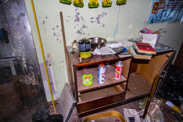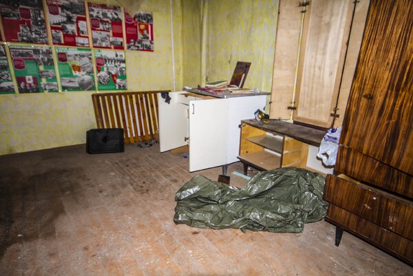 Во время очередного исследования заброшенных многоэтажек мы совершенно случайно наткнулись на квартиру, в которой явно кто-то обосновался. На четвёртом этаже сталкеры устроили себе импровизированный лагерь: место для сна и уголок для приготовления пищи. Как правило, такие убежища легко узнать по двум главным атрибутам: спальным местам и столу, который служит и кухней, и центром жизни.