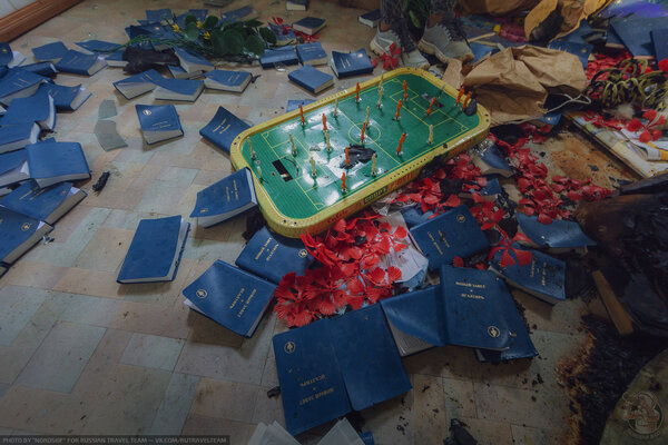У меня сложилось стойкое впечатление, что кто-то буквально разгромил склад с гуманитарной помощью, которую когда-то отправляли в Крым. Загадочности добавляли и непонятные графики, оставшиеся на школьной доске.