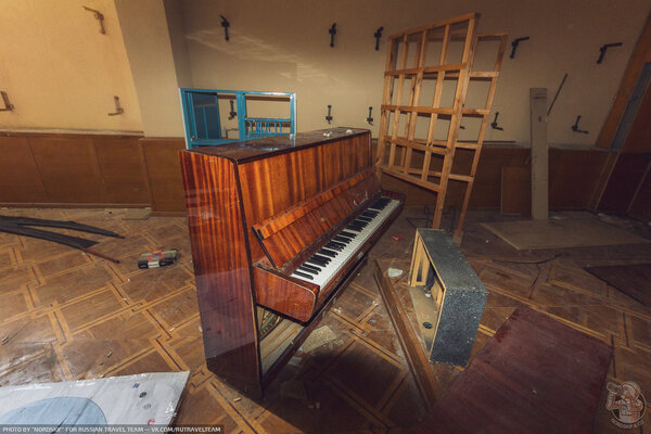 И, конечно, здесь нашлось пианино — почти обязательный атрибут старых советских ДК. Инструмент, к моему удивлению, был в довольно хорошем состоянии: все клавиши звучали, хотя и требовали серьёзной настройки.