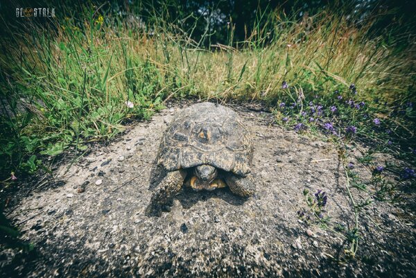 Зато нас ждала приятная неожиданная встреча! Уже на выходе мы увидели вот такую крупную черепаху. Спокойную и неторопливую. Она вышла погреться на солнце и совершенно нас не боялась...