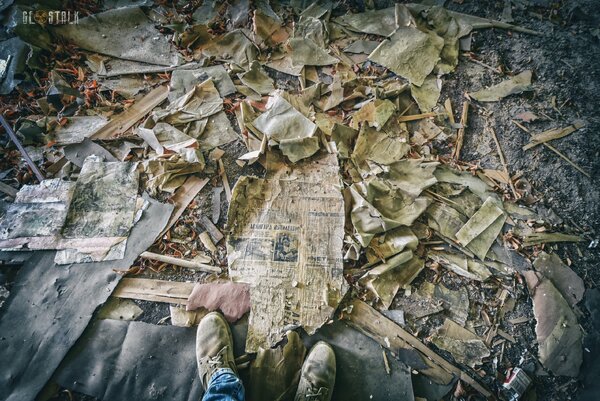 К сожалению, никаких ценных артефактов на этой «заброшке» уже не осталось. Лишь изредка в пустых залах попадаются клочки военной формы.