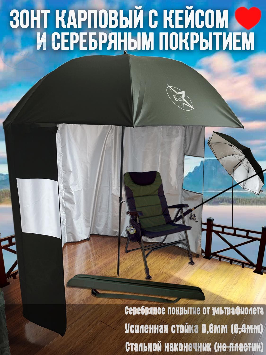 Плюсы: идеальный вариант для стационарной ловли, защищает от дождя и солнца.