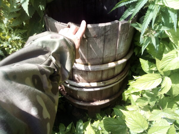 Прямо у входа, на земле, валялась старинная деревянная кадушка, целиком сделанная руками умелого бондаря — мастера по изготовлению бочек. Когда-то такая вещь стоила немалых денег, а сегодня этот почти музейный экспонат бесцельно гниет под открытым небом.