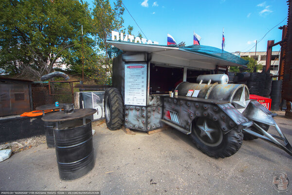 Пост не рекламный, поэтому ссылок не будет! :) Но те кто реально заинтересуются легко найдут заведение вбив его название в поиск или использовав крымский музей «Ночных Волков» как ориентир.