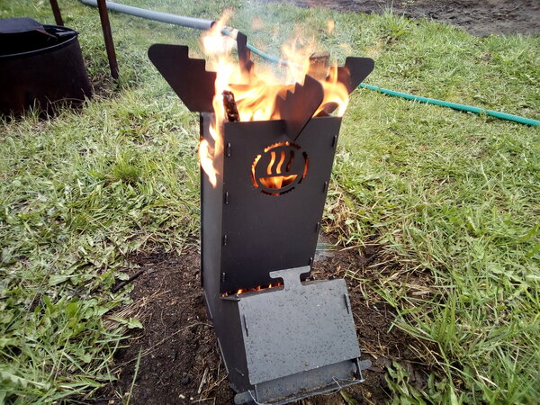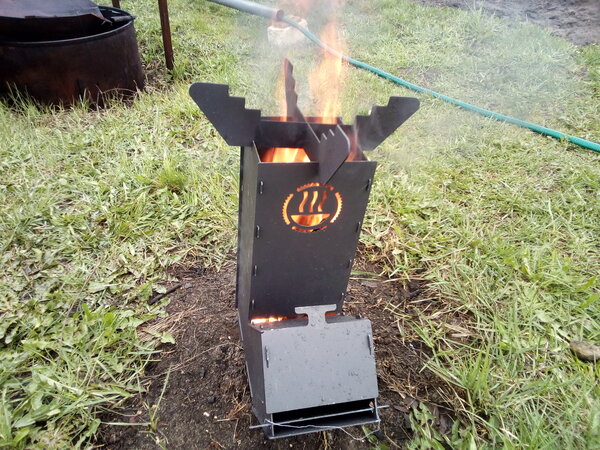 На днях я ездил в родную деревню и решил воспользоваться случаем, чтобы протестировать новинку. К сожалению, опробовать ее в лесу пока не получилось — у нас объявлен 4-й класс пожароопасности, уже пострадало несколько деревень. Хотя устроить пожар с такой печью крайне сложно, проверки ведутся строгие, и лесник, заметив дым, может и не разбираться в деталях. Доказывать, что ты не «олень», который поджег тайгу, будет непросто.
