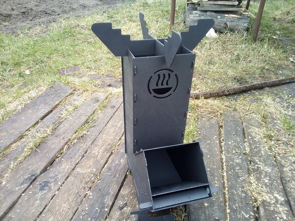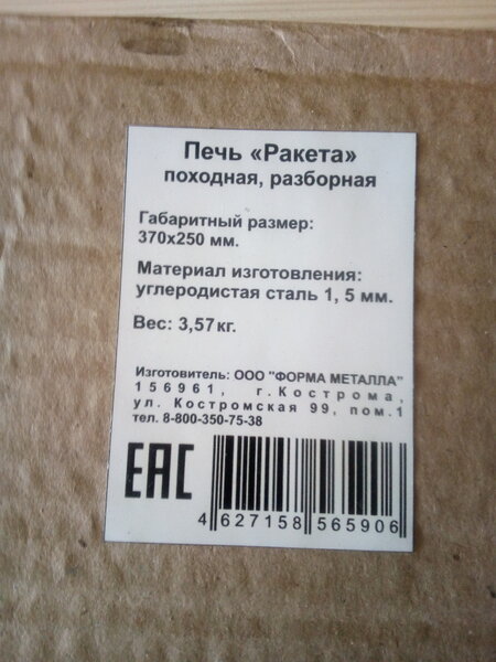 В процессе поисков я наткнулся на сайт костромского завода «Форма Металла». Именно там я обнаружил «ракетную печь» для туристов, которая полностью разбирается. Этот вариант сразу же меня заинтересовал. Прошло некоторое время, и вот желанная «ракета» наконец-то у меня в руках.