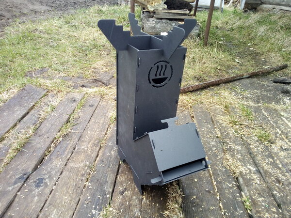 Если вы увлекаетесь рыбалкой или охотой, то приготовить свежий улов или добычу на этой печи — одно удовольствие. Вот так она выглядит в собранном состоянии.