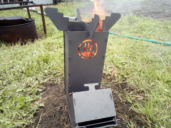 Мой тест проходил в пасмурную погоду: сильный дождь сменялся моросящим, что сделало испытания более объективными. Реактивную тягу обеспечивает сама конструкция печи, плюс ее можно регулировать с помощью специальной заслонки.