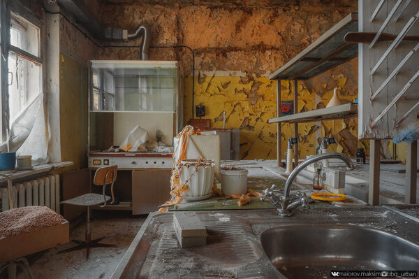 Внутри картина была ещё более безрадостной. Побелка осыпалась с потолка и лежала на полу толстым ковром, краска на стенах облупилась и висела лохмотьями. Календари, застывшие на датах более чем десятилетней давности, ясно указывали, когда здесь в последний раз кипела работа.