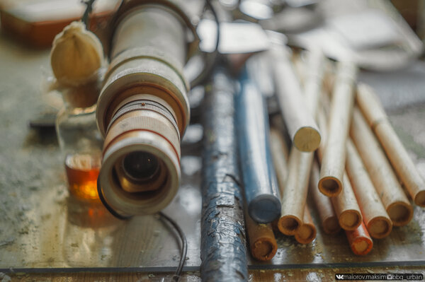 Повсюду разбросаны различные приборы, оптические устройства и микроскопы, когда-то бывшие ценными инструментами науки.