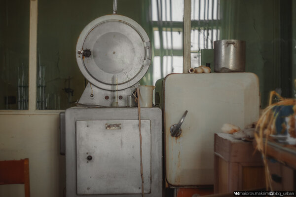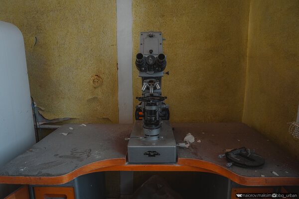 Всё это оборудование теперь окончательно непригодно для использования. Агрессивные грибок и плесень захватили все помещения, проникли внутрь корпусов приборов и объективов микроскопов, довершая разрушение.