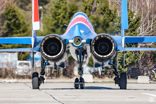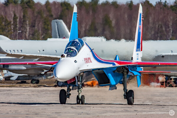 Вот, например, один из истребителей группы «Витязи» заходит на стоянку.