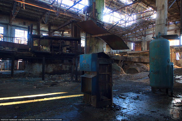 В своё время этот завод специализировался на выпуске тары для минеральной воды и газированных напитков. Сегодня же сквозь пробитую крышу на частично разобранные производственные линии льётся вода, застывая длинными сосульками на ржавых конструкциях.