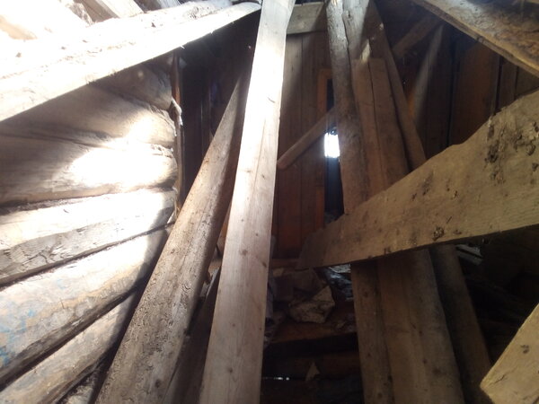 Дом встретил меня обвалившейся крышей над сенями. Однако завал не был настолько серьёзным, чтобы полностью преградить путь. Проявив осторожность, мне удалось протиснуться между покосившихся досок.